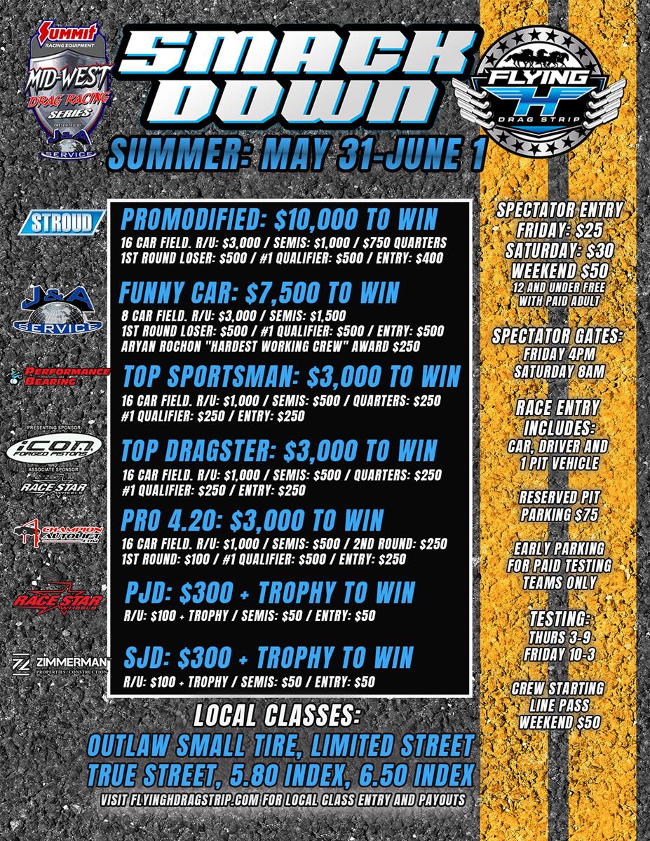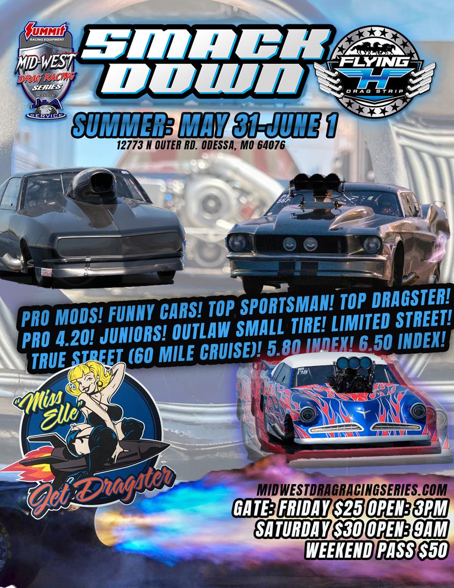 Online registration available now for Summer Smack Down at the all NEW Flying H Dragstrip!