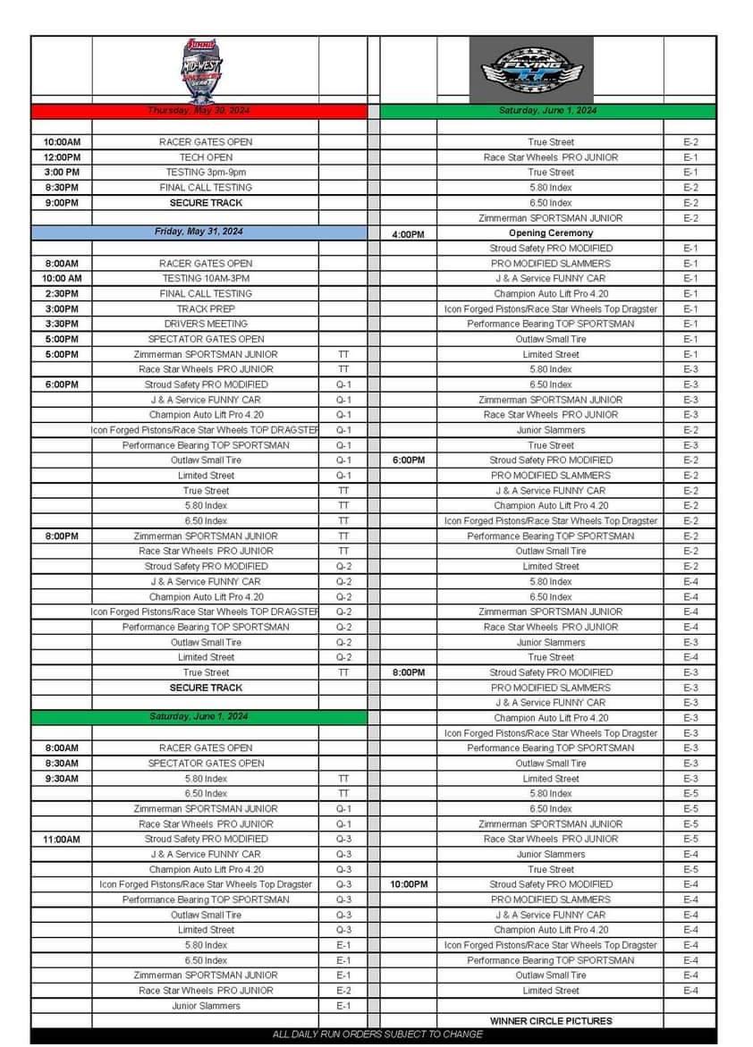 Summer Smackdown Schedule of Events at Flying H Dragstrip!