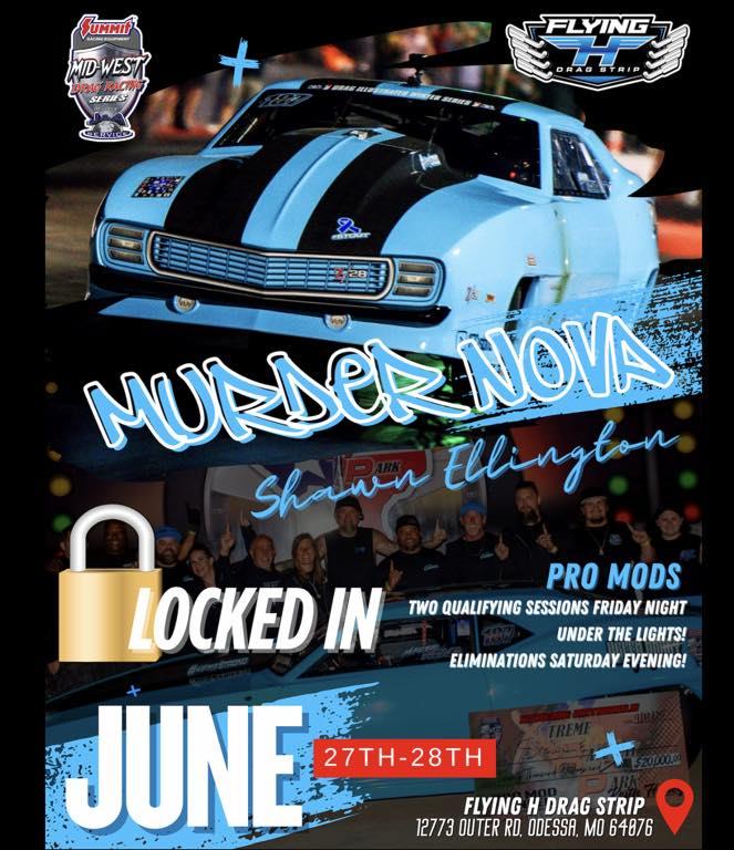 Shawn "Murder Nova" Ellington will be at Flying H Drag Strip racing with Summit Racing Equipment Mid-West Drag Racing Series Presented By J&A Service LLC next weekend.