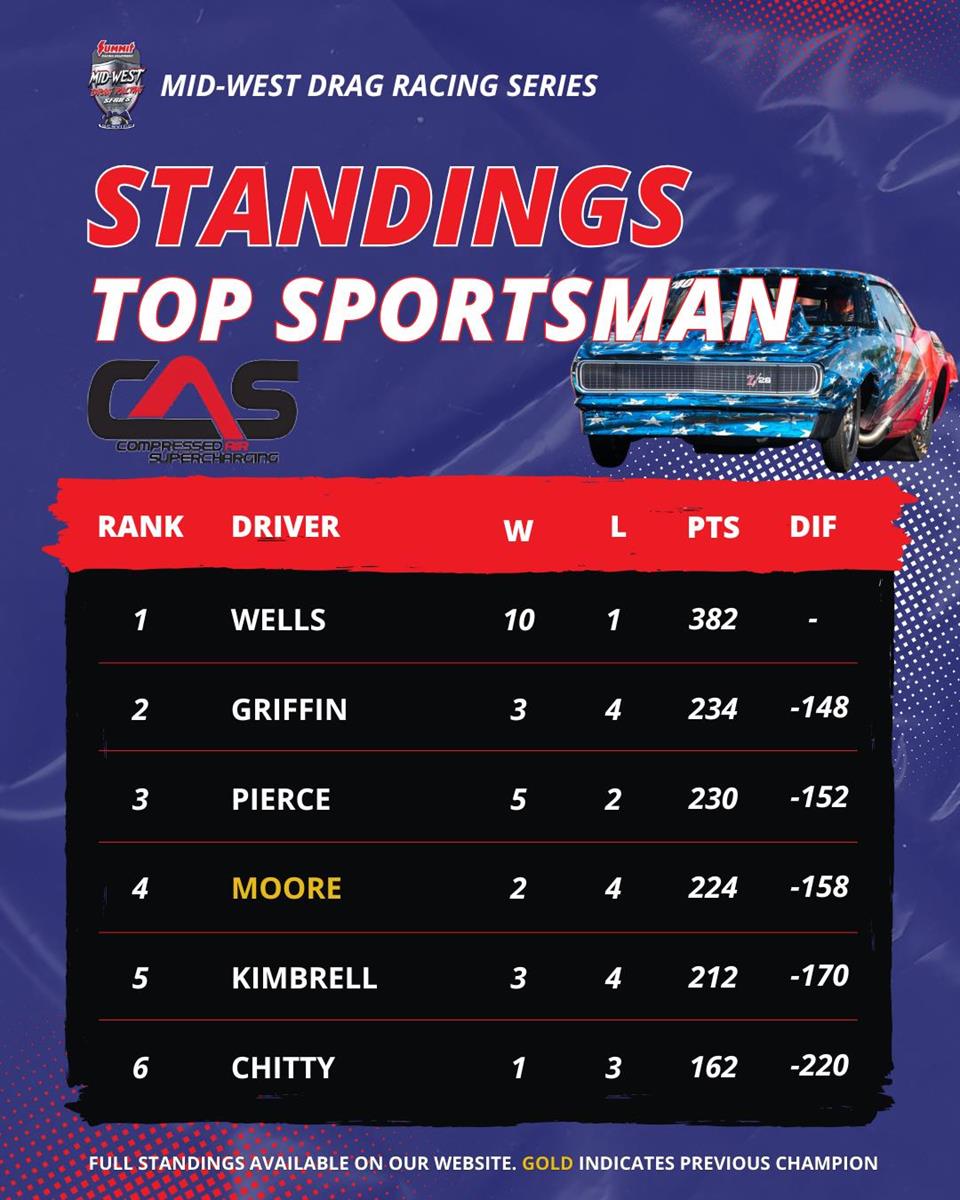 While the championship favorite is clearly Tyler Wells at this point, I think the real battle to watch this year in Top Sportsman is going to be a battle between teams. The Compressed Air Supercharging cars hold down spots 2 and 3, with Straight Line Engines grabbing spots 4,5, and 7 (Doug Woody himself). With barely a round seperating the two top cars for each team, the battle is tight between the builders. Find out who takes the lead and if anyone can knock down Tyler Wells on September 5-6th at US-131 Motorsports Park in Michigan!
