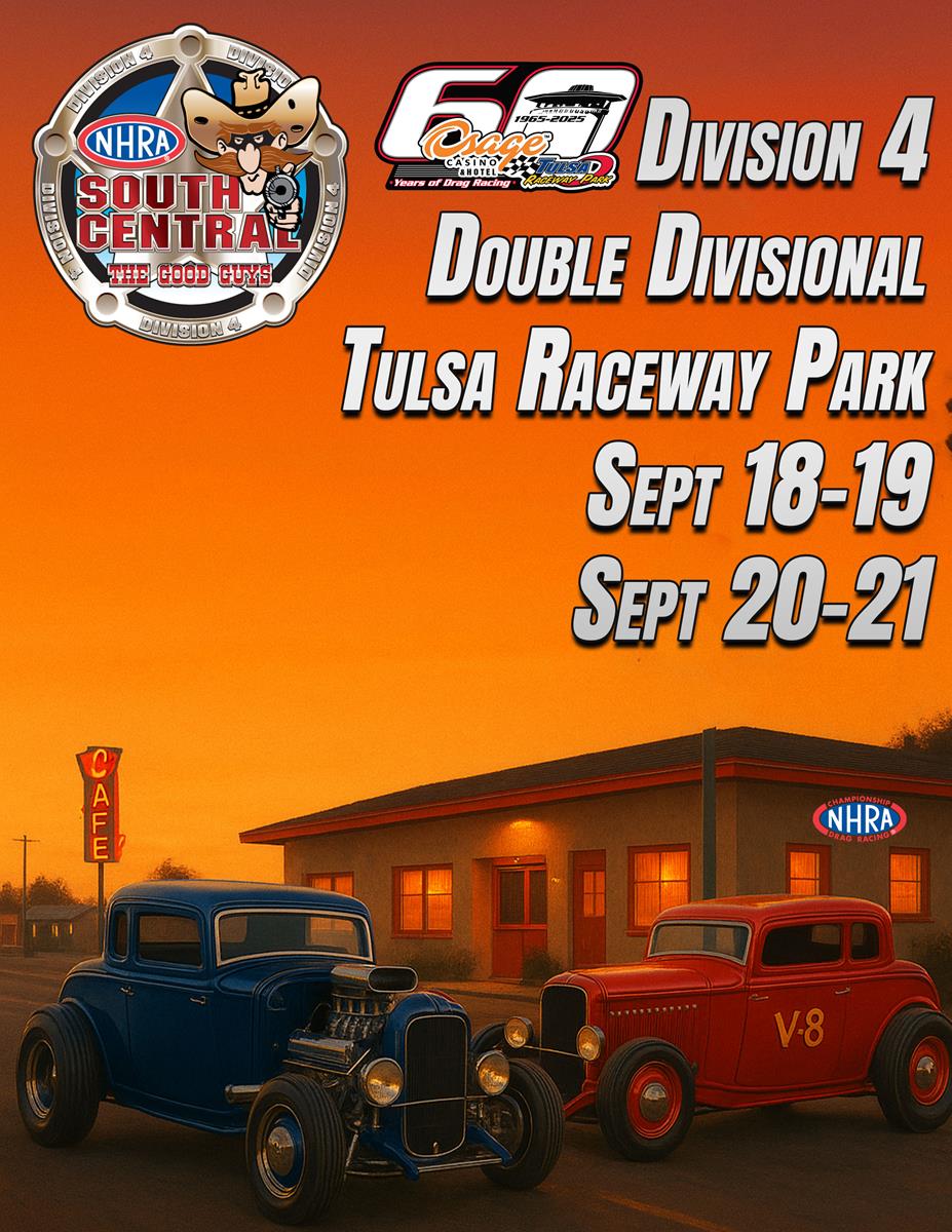 The following week, the NHRA invades TRP with a HUGE NHRA Division 4 Double Divisional for Sept 18-21!! With TWO Divisional Races, this event will be PACKED with the fastest cars, fighting for much needed Championship Points! Come see 100s of cars do battle everyday! Thursday through Sunday, fans will be treated to TWO complete NHRA races!