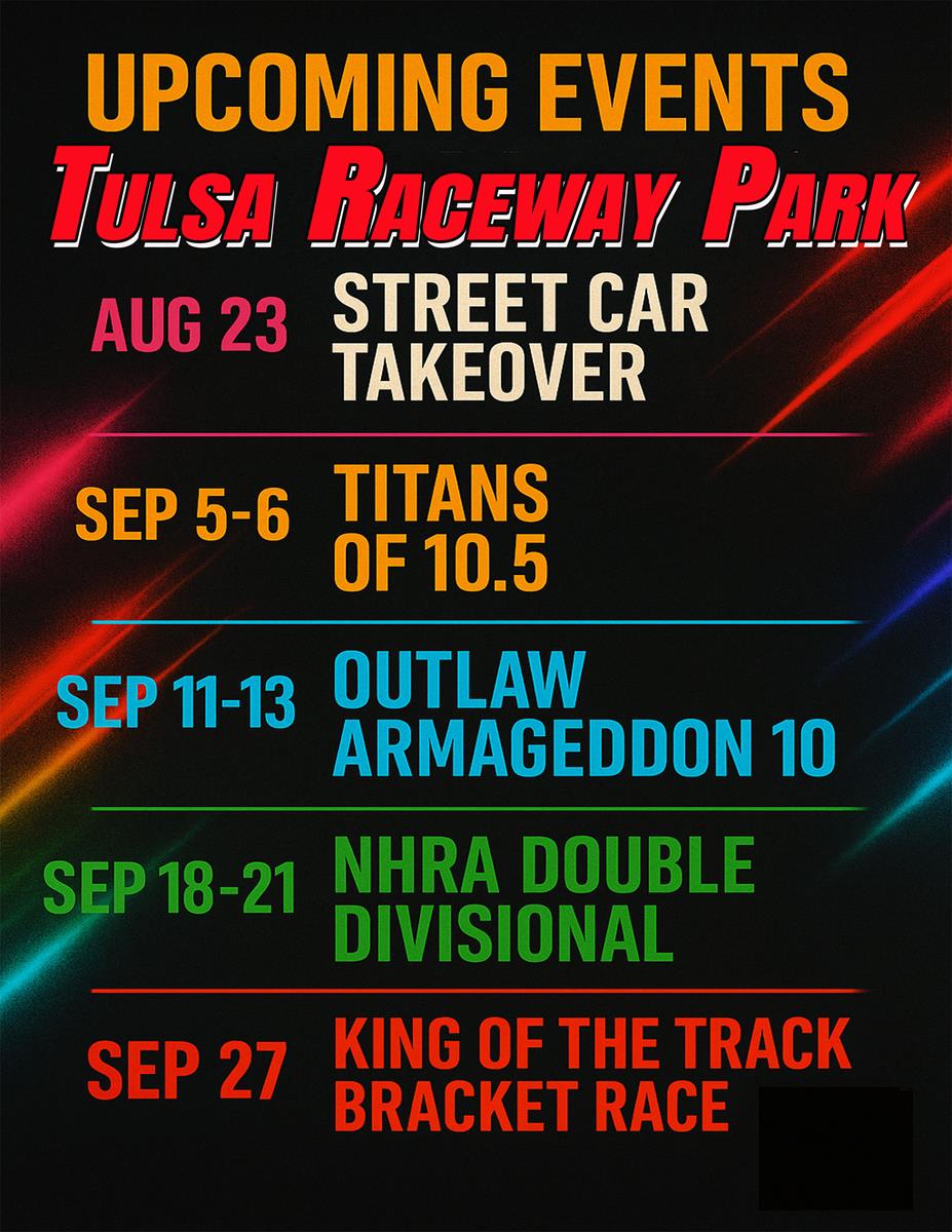 The Next SIX Weeks at Tulsa Raceway Park will be HUGE!!