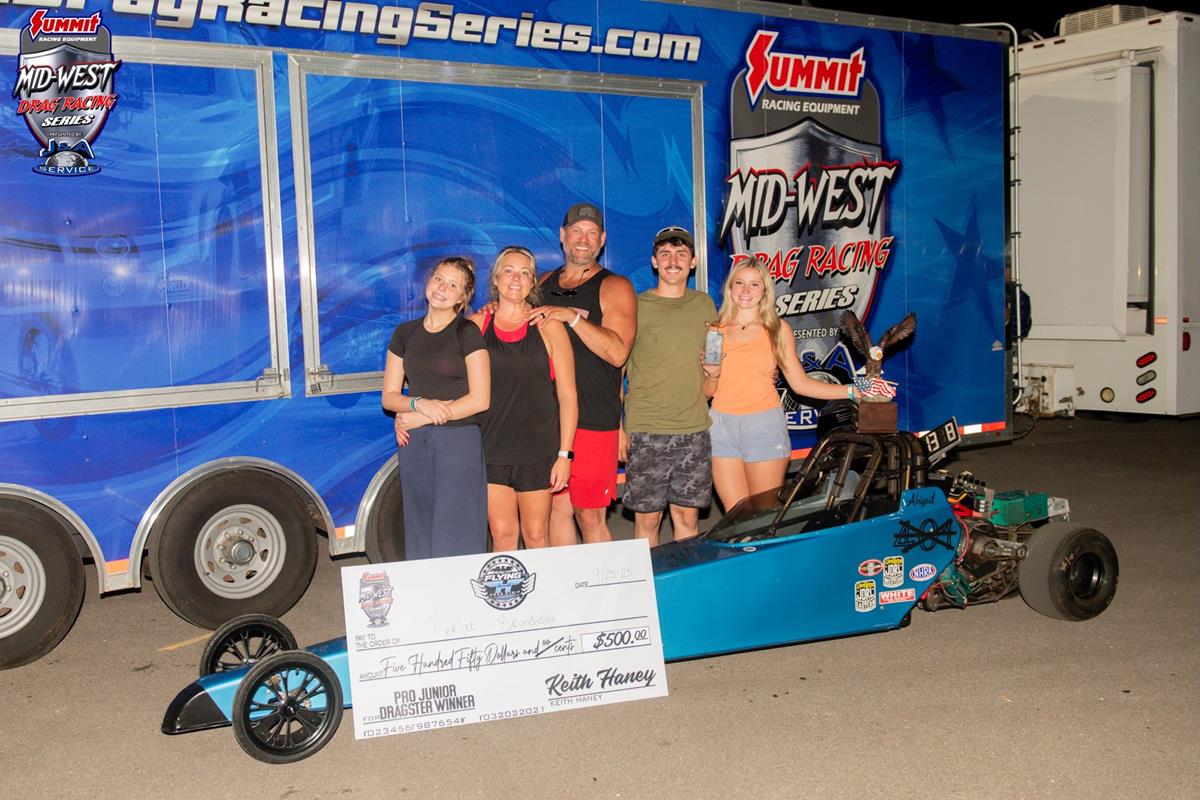 With 2 Zimmerman Sportsman Junior championships and 1 Race Star Wheels Pro Junior championship already to his name, Wells moves past Keith Haney and Rod Moore into the role of the most decorated driver in Mid-West Drag Racing Series history. "When I first started in this car, I didn't think I'd do this good. Actually, I didn't even think I'd win a race, a few rounds was the goal. Winning a championship is pretty crazy," said Wells.